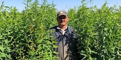 Our long time employee, Cruz, stood in one of our newest cover crops, Sunn Hemp, to show the quick